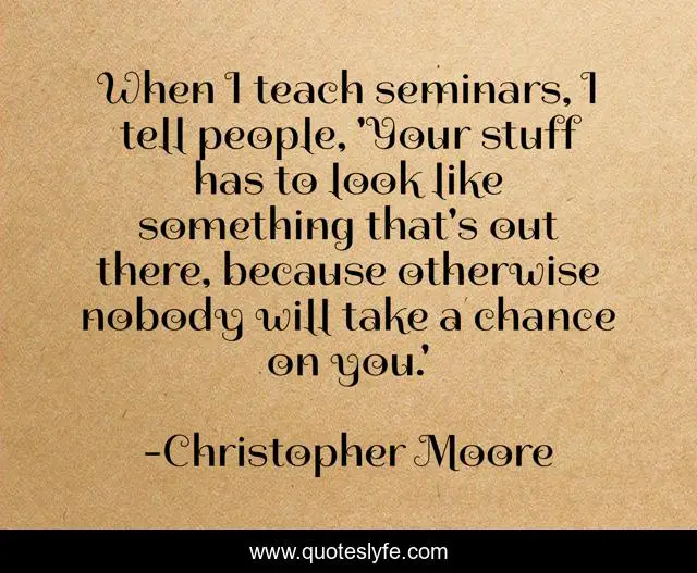 This page presents the quote "When I teach seminars, I tell people, 'Your stuff has to look like something that's out there, because otherwise nobody will take a chance on you.'". Author of this quote is Christopher Moore. This quote is about look, people,.