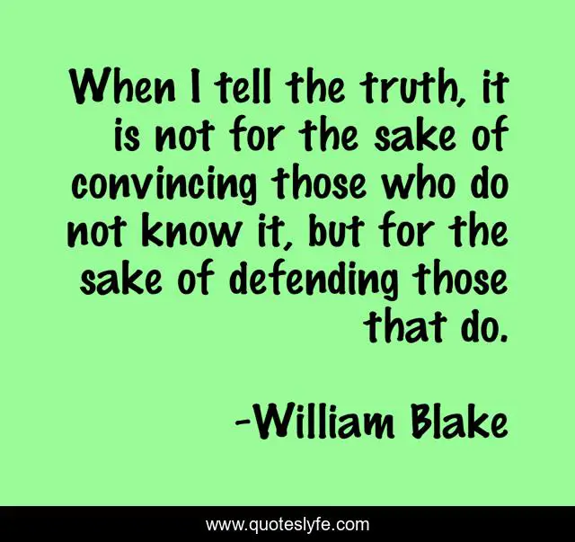 This page presents the quote "When I tell the truth, it is not for the sake of convincing those who do not know it, but for the sake of defending those that do.". Author of this quote is William Blake. .