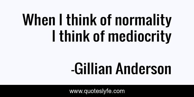 This page presents the quote "When I think of normality I think of mediocrity". Author of this quote is Gillian Anderson. This quote is about life, creativity,.