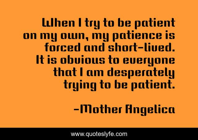 This page presents the quote "When I try to be patient on my own, my patience is forced and short-lived. It is obvious to everyone that I am desperately trying to be patient.". Author of this quote is Mother Angelica. This quote is about try, trying,.