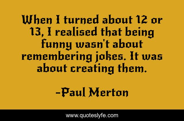 "Paul Merton Quotes." Quoteslyfe.com, 2025. Mon. 08 Dec. 2025. <https://www.quoteslyfe.com/quote/When-I-turned-about-12-or-13-316952>.