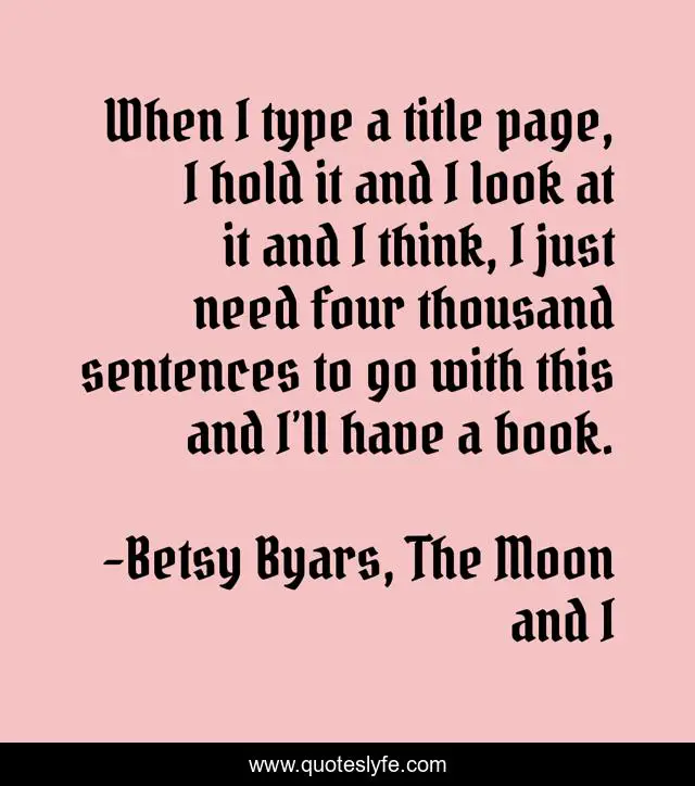 "Betsy Byars, The Moon and I Quotes." Quoteslyfe.com, 2025. Fri. 05 Dec. 2025. <https://www.quoteslyfe.com/quote/When-I-type-a-title-page-I-27160>.