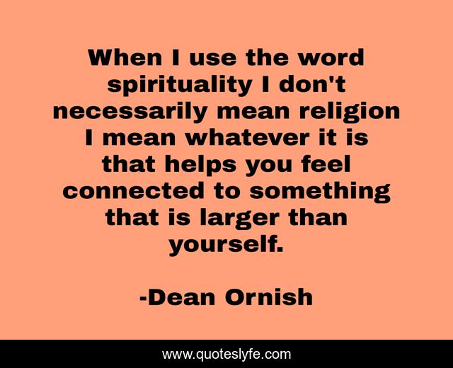 This page presents the quote "When I use the word spirituality I don't necessarily mean religion I mean whatever it is that helps you feel connected to something that is larger than yourself.". Author of this quote is Dean Ornish. .
