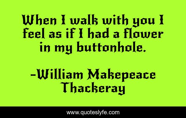 This page presents the quote "When I walk with you I feel as if I had a flower in my buttonhole.". Author of this quote is William Makepeace Thackeray. This quote is about flower, walk,.