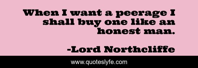 This page presents the quote "When I want a peerage I shall buy one like an honest man.". Author of this quote is Lord Northcliffe. .