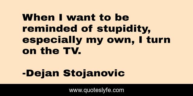 This page presents the quote "When I want to be reminded of stupidity, especially my own, I turn on the TV.". Author of this quote is Dejan Stojanovic. This quote is about literature, tv, dejan-stojanovic, poetry, wisdom, quotes, stupidity, quotes-to-live-by, thoughts,.