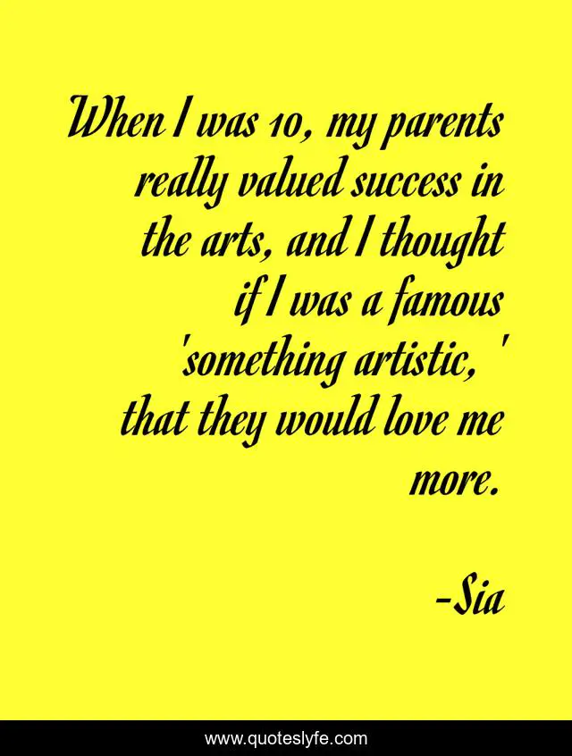 This page presents the quote "When I was 10, my parents really valued success in the arts, and I thought if I was a famous 'something artistic, ' that they would love me more.". Author of this quote is Sia. This quote is about love, parents, success, affection,.