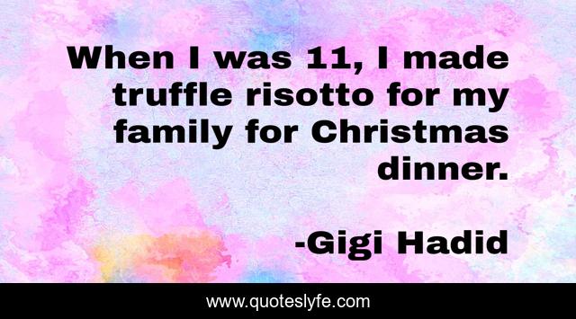 This page presents the quote "When I was 11, I made truffle risotto for my family for Christmas dinner.". Author of this quote is Gigi Hadid. This quote is about dinner, made, family,.