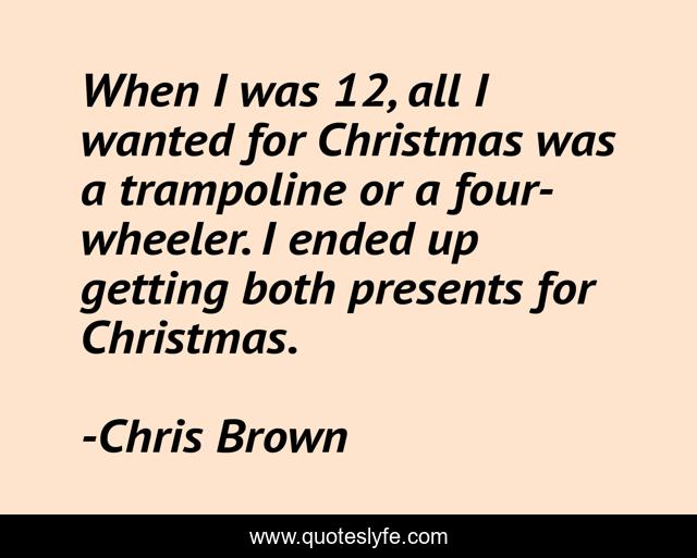 This page presents the quote "When I was 12, all I wanted for Christmas was a trampoline or a four-wheeler. I ended up getting both presents for Christmas.". Author of this quote is Chris Brown. This quote is about presents, both, up,.