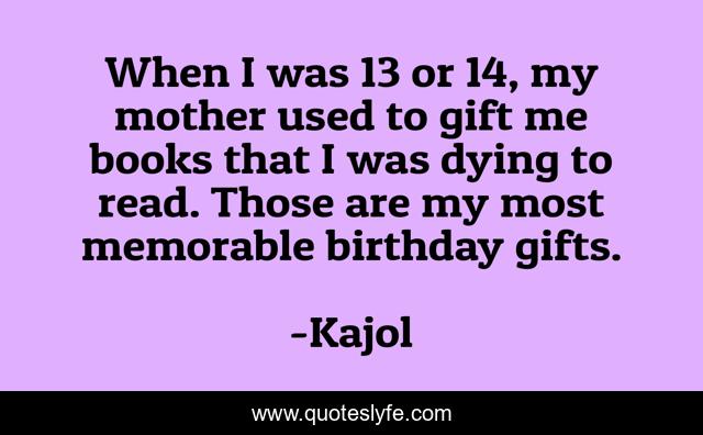 This page presents the quote "When I was 13 or 14, my mother used to gift me books that I was dying to read. Those are my most memorable birthday gifts.". Author of this quote is Kajol. This quote is about me, gift, mother,.