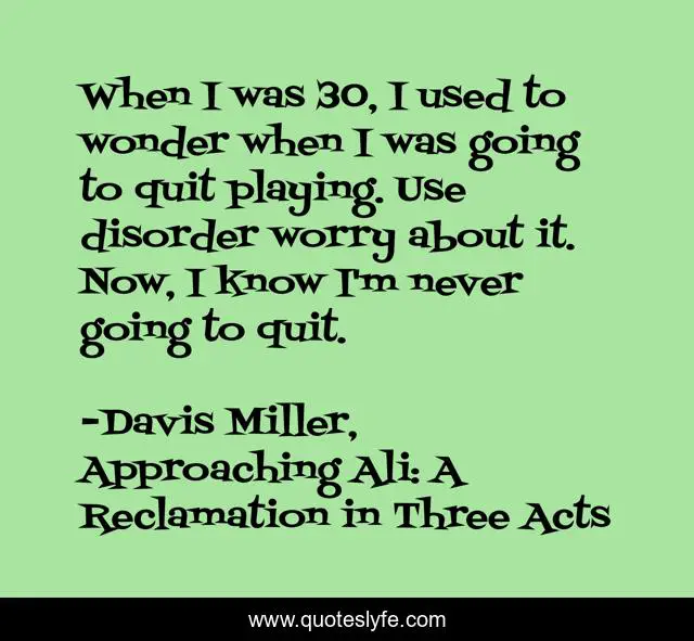 This page presents the quote "When I was 30, I used to wonder when I was going to quit playing. Use disorder worry about it. Now, I know I'm never going to quit.". Author of this quote is Davis Miller, Approaching Ali: A Reclamation in Three Acts. This quote is about imagination, resilience, rejuvenation,.