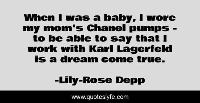 This page presents the quote "When I was a baby, I wore my mom's Chanel pumps - to be able to say that I work with Karl Lagerfeld is a dream come true.". Author of this quote is Lily-Rose Depp. This quote is about baby, work, dream,.