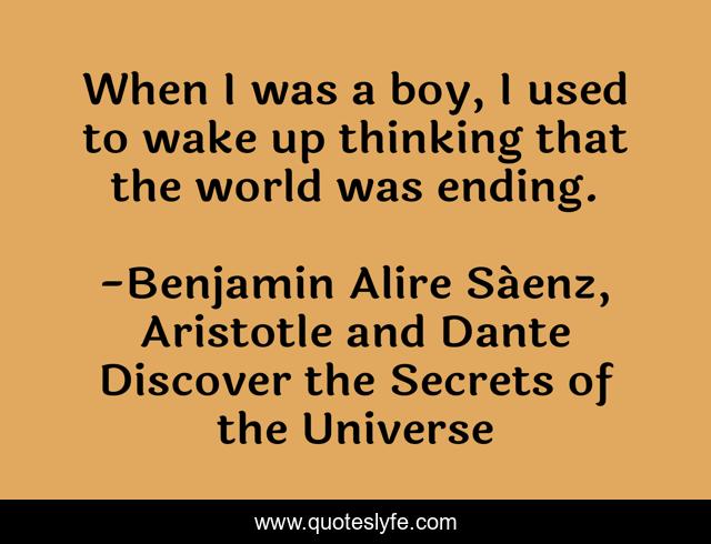 This page presents the quote "When I was a boy, I used to wake up thinking that the world was ending.". Author of this quote is Benjamin Alire Sáenz, Aristotle and Dante Discover the Secrets of the Universe. This quote is about pain, powerful, lgbt, moving, inspirational, enthusiasm,.