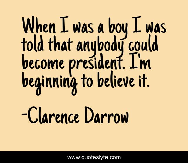 This page presents the quote "When I was a boy I was told that anybody could become president. I'm beginning to believe it.". Author of this quote is Clarence Darrow. .