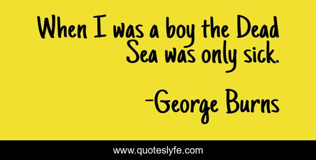 This page presents the quote "When I was a boy the Dead Sea was only sick.". Author of this quote is George Burns. This quote is about age, humor,.