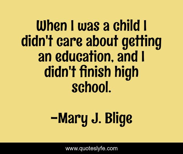 This page presents the quote "When I was a child I didn't care about getting an education, and I didn't finish high school.". Author of this quote is Mary J. Blige. This quote is about school, high school, child,.