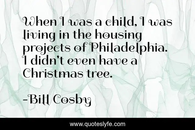 This page presents the quote "When I was a child, I was living in the housing projects of Philadelphia. I didn't even have a Christmas tree.". Author of this quote is Bill Cosby. This quote is about living, tree, child,.
