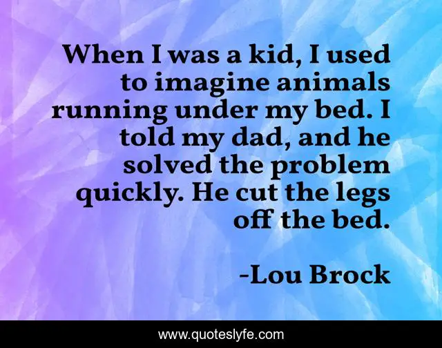 This page presents the quote "When I was a kid, I used to imagine animals running under my bed. I told my dad, and he solved the problem quickly. He cut the legs off the bed.". Author of this quote is Lou Brock. This quote is about problem, legs, animals,.