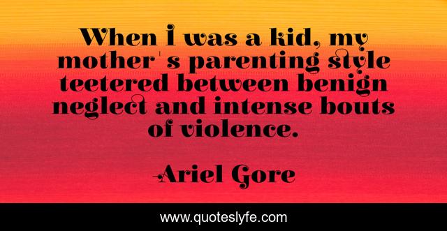 This page presents the quote "When I was a kid, my mother's parenting style teetered between benign neglect and intense bouts of violence.". Author of this quote is Ariel Gore. This quote is about style, violence, mother,.