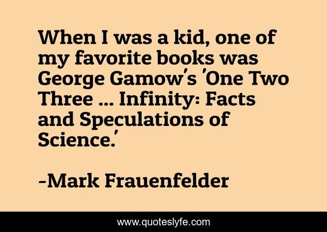 This page presents the quote "When I was a kid, one of my favorite books was George Gamow's 'One Two Three ... Infinity: Facts and Speculations of Science.'". Author of this quote is Mark Frauenfelder. This quote is about facts, favorite, three,.