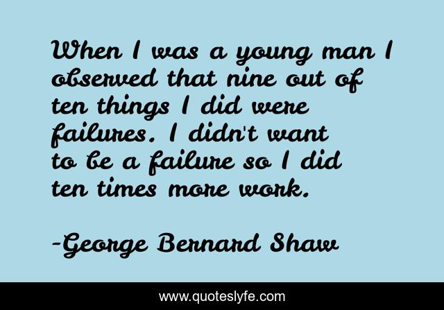 When I was a young man I observed that nine out of ten things I did were failures. I didn't want to be a failure so I did ten times more work.