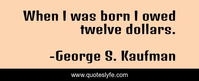 This page presents the quote "When I was born I owed twelve dollars.". Author of this quote is George S. Kaufman. This quote is about i was born, twelve, born,.