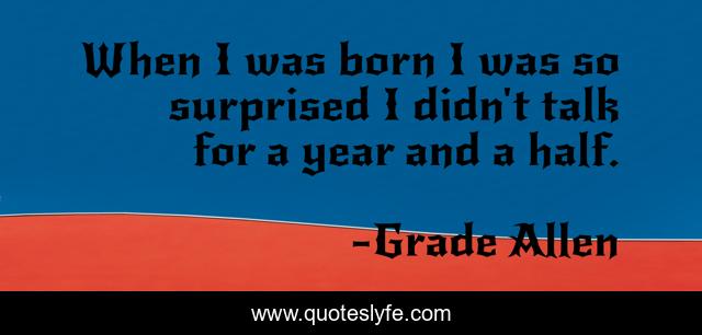 This page presents the quote "When I was born I was so surprised I didn't talk for a year and a half.". Author of this quote is Grade Allen. .