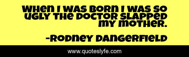 This page presents the quote "When I was born I was so ugly the doctor slapped my mother.". Author of this quote is Rodney Dangerfield. This quote is about ugly, mother, doctor,.