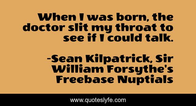 "Sean Kilpatrick, Sir William Forsythe's Freebase Nuptials Quotes." Quoteslyfe.com, 2025. Sun. 07 Dec. 2025. <https://www.quoteslyfe.com/quote/When-I-was-born-the-doctor-slit-14836>.