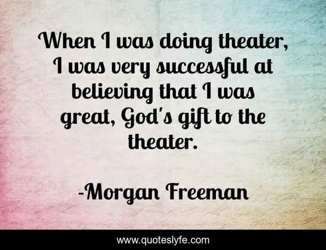 This page presents the quote "When I was doing theater, I was very successful at believing that I was great, God's gift to the theater.". Author of this quote is Morgan Freeman. This quote is about successful, great, gift,.