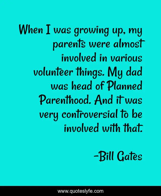 This page presents the quote "When I was growing up, my parents were almost involved in various volunteer things. My dad was head of Planned Parenthood. And it was very controversial to be involved with that.". Author of this quote is Bill Gates. This quote is about growing, parents, growing up,.
