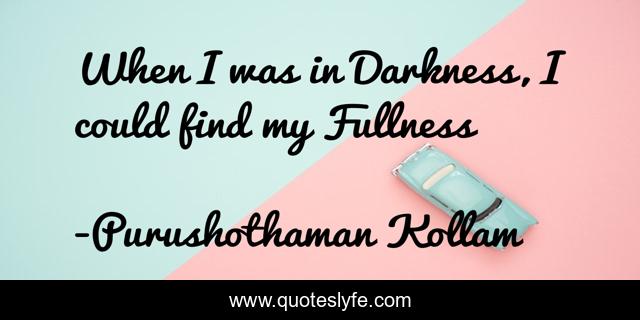 This page presents the quote "When I was in Darkness, I could find my Fullness". Author of this quote is Purushothaman Kollam. This quote is about meditation, darkness, experience, reality,.
