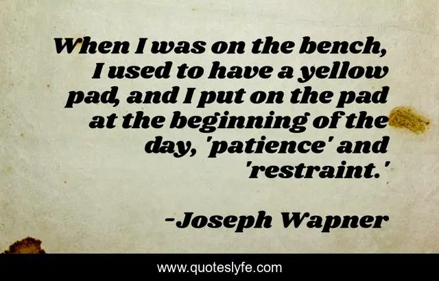 This page presents the quote "When I was on the bench, I used to have a yellow pad, and I put on the pad at the beginning of the day, 'patience' and 'restraint.'". Author of this quote is Joseph Wapner. This quote is about beginning, day, yellow,.