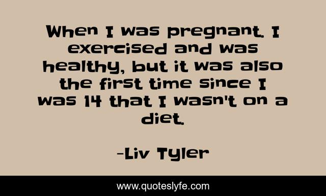 This page presents the quote "When I was pregnant. I exercised and was healthy, but it was also the first time since I was 14 that I wasn't on a diet.". Author of this quote is Liv Tyler. This quote is about healthy, first time, time,.