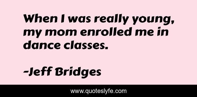 This page presents the quote "When I was really young, my mom enrolled me in dance classes.". Author of this quote is Jeff Bridges. This quote is about dance, me, young,.