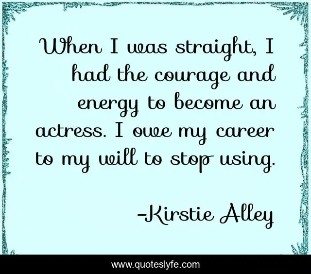This page presents the quote "When I was straight, I had the courage and energy to become an actress. I owe my career to my will to stop using.". Author of this quote is Kirstie Alley. This quote is about career, energy, stop,.