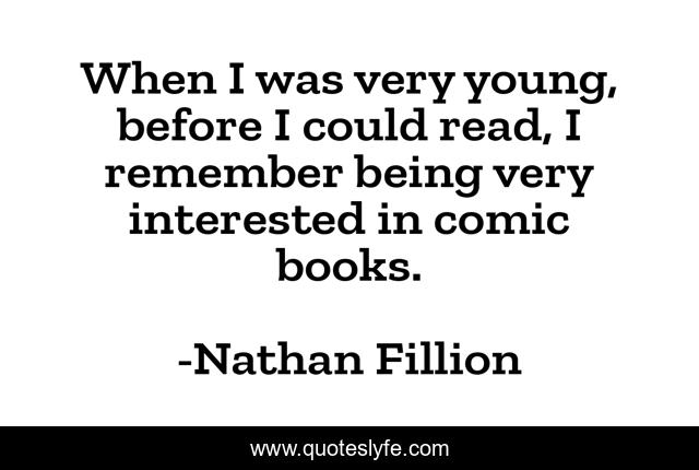 This page presents the quote "When I was very young, before I could read, I remember being very interested in comic books.". Author of this quote is Nathan Fillion. This quote is about youth, reading, comic-books, young,.