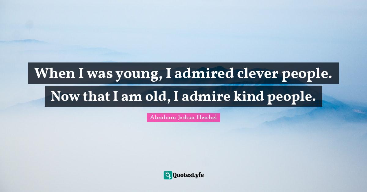 This page presents the quote "When I was young, I admired clever people. Now that I am old, I admire kind people.". Author of this quote is Abraham Joshua Heschel. This quote is about admire, people, clever, kindness, young, kind, bullying,.