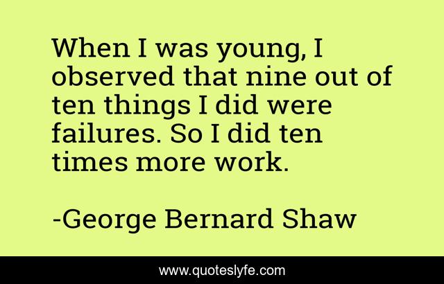 This page presents the quote "When I was young, I observed that nine out of ten things I did were failures. So I did ten times more work.". Author of this quote is George Bernard Shaw. This quote is about things, work, young,.