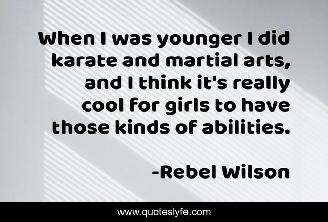 This page presents the quote "When I was younger I did karate and martial arts, and I think it's really cool for girls to have those kinds of abilities.". Author of this quote is Rebel Wilson. This quote is about younger, martial arts, think,.