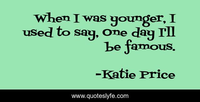 This page presents the quote "When I was younger, I used to say, One day I'll be famous.". Author of this quote is Katie Price. This quote is about younger, day,.