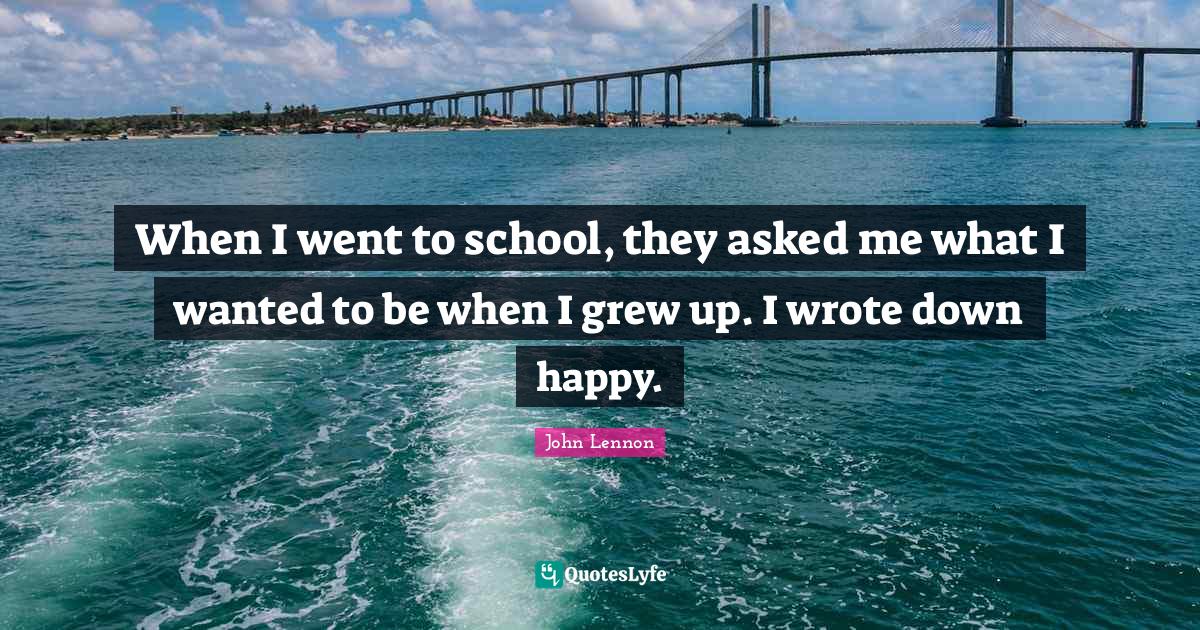 This page presents the quote "When I went to school, they asked me what I wanted to be when I grew up. I wrote down happy.". Author of this quote is John Lennon. This quote is about school, positive, inspirational, wanted, happy, grew up, motivational,.