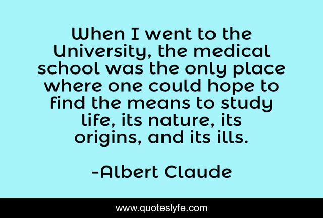 This page presents the quote "When I went to the University, the medical school was the only place where one could hope to find the means to study life, its nature, its origins, and its ills.". Author of this quote is Albert Claude. This quote is about life, school, nature,.