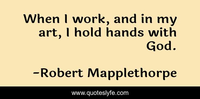 This page presents the quote "When I work, and in my art, I hold hands with God.". Author of this quote is Robert Mapplethorpe. This quote is about god, work, hands,.