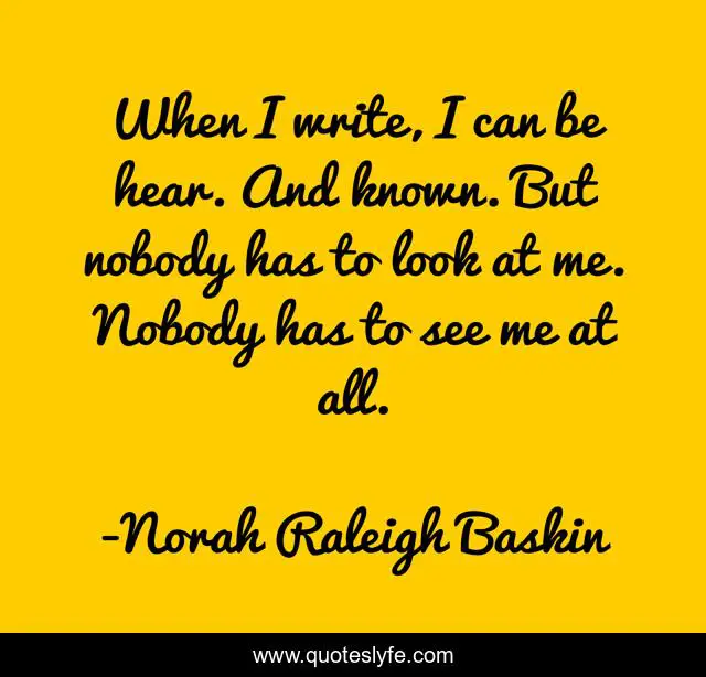 "Norah Raleigh Baskin Quotes." Quoteslyfe.com, 2025. Fri. 05 Dec. 2025. <https://www.quoteslyfe.com/quote/When-I-write-I-can-be-hear-223173>.