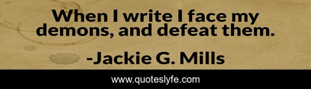 This page presents the quote "When I write I face my demons, and defeat them.". Author of this quote is Jackie G. Mills. .