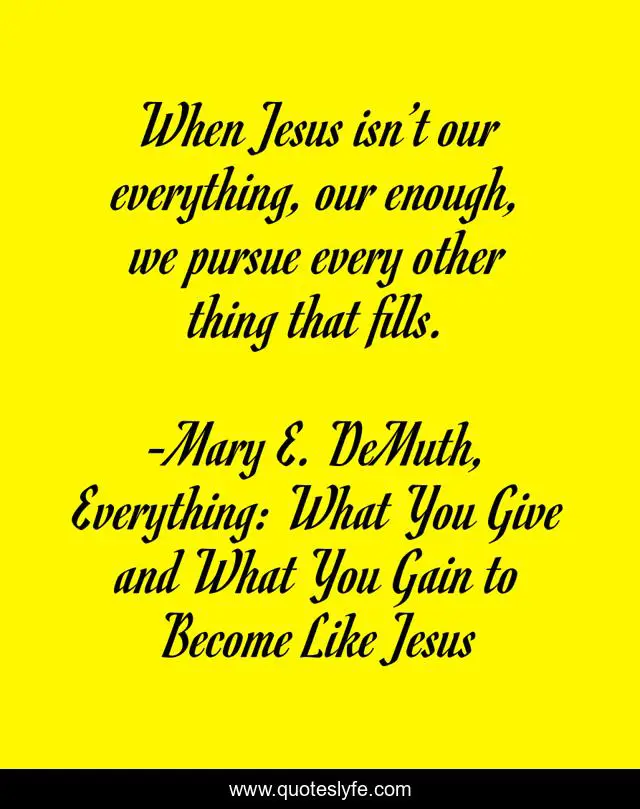 "Mary E. DeMuth, Everything: What You Give and What You Gain to Become Like Jesus Quotes." Quoteslyfe.com, 2025. Mon. 08 Dec. 2025. <https://www.quoteslyfe.com/quote/When-Jesus-isn-t-our-everything-our-134726>.