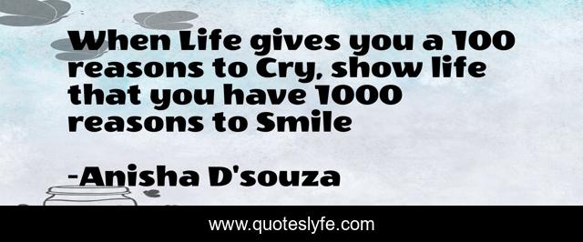 This page presents the quote "When Life gives you a 100 reasons to Cry, show life that you have 1000 reasons to Smile". Author of this quote is Anisha D'souza. This quote is about enthusiasm, happiness, inspirational,.