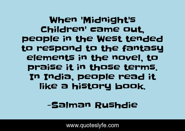 This page presents the quote "When 'Midnight's Children' came out, people in the West tended to respond to the fantasy elements in the novel, to praise it in those terms. In India, people read it like a history book.". Author of this quote is Salman Rushdie. This quote is about book, children, people,.