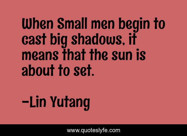 This page presents the quote "When Small men begin to cast big shadows, it means that the sun is about to set.". Author of this quote is Lin Yutang. This quote is about shadows, sun, men, set,.